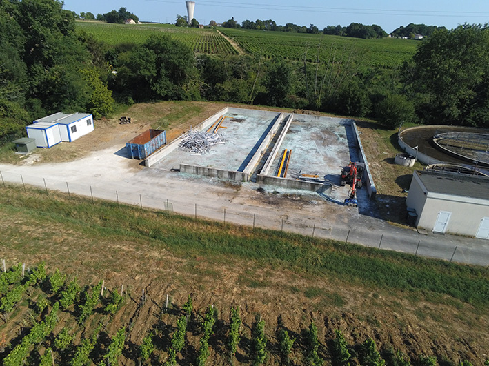 La réalisation consiste en la démolition des serres solaires et la construction d’une nouvelle station d’épuration. Les ouvrages existants sont voués à la démolition excepté le bassin tampon qui sera réutilisé.